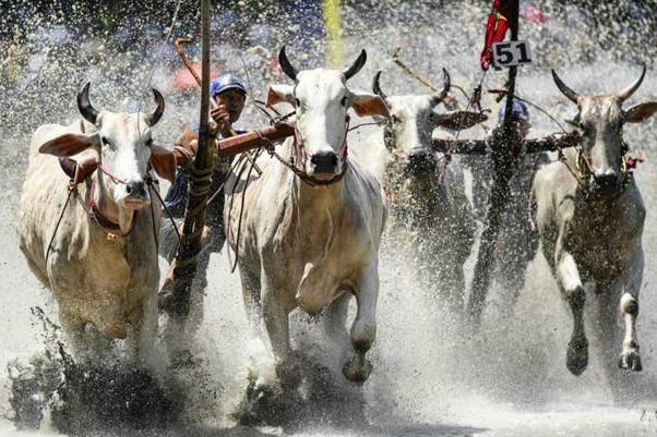 In Vietnam's An Giang province, people gather to participate in the annual bull racing festival.