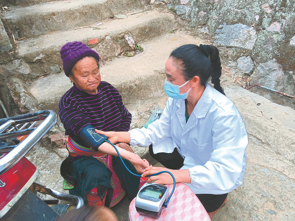 Yang gives routine checkups to the village elderly. [Photo provided to China Daily]