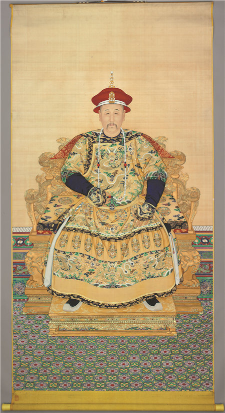 Yang is standing right in front of a portrait of Emperor Yongzheng (1678-1735), whose father Emperor Kangxi, considered the greatest Qing ruler, harbored a passionate interest toward Western painting, which directly facilitated the arrival in China of many missionary artists.