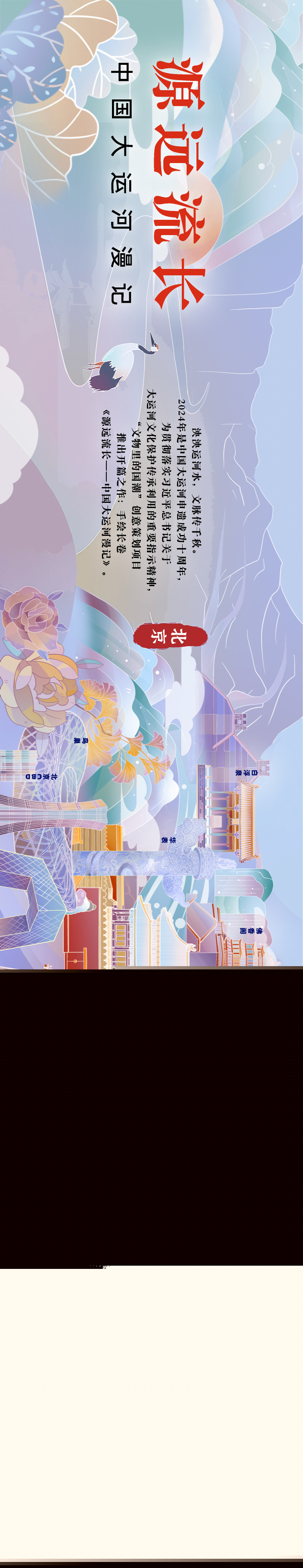 The magnificent river carries the water, and the cultural lineage is passed down through the ages. As 2024 marks the 10th anniversary of China's successful bid to inscribe China's Grand Canal as a UNESCO World Heritage Site and to implement China's emphasis on the protection of cultural heritage of the Grand Canal, an animated scroll "A Memoir of the Grand Canal" was released as the opening work of the project "Canal Chic - Reviving China's Heritage".