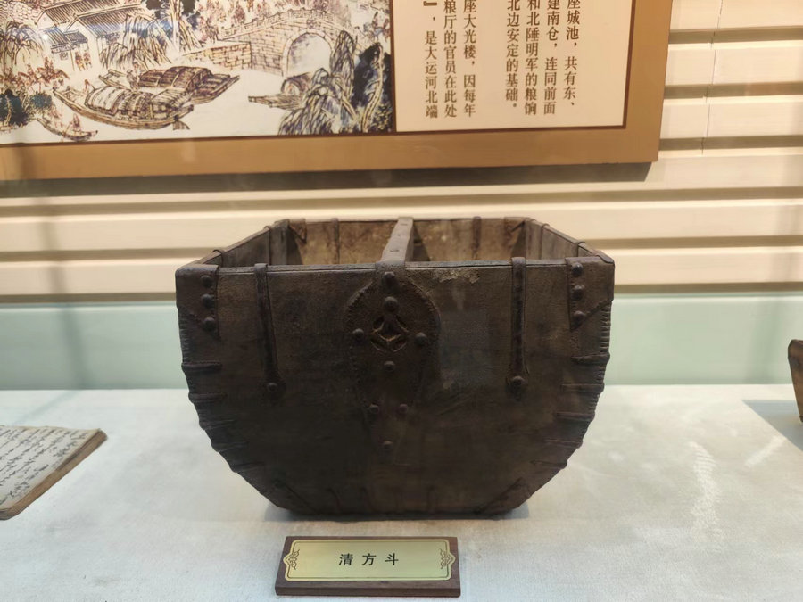 A gauge used for measuring tribute grain in Qing Dynasty (1644-1911) on display at the China Caoyun Museum in Huai'an, East China's Jiangsu province [Photo by Yang Xiaoyu chinadaily.com.cn]